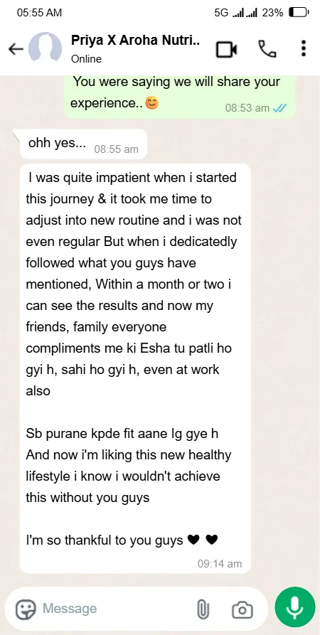 What really changed for me was the personalised approach. The plan was realistic, easy to follow, and fit into my daily routine instead of disrupting it. Slowly, I started feeling lighter, more energetic, and more confident — not just physically, but mentally too.